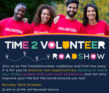17 October 2023Time2Volunteer Roadshow at the AMCC!Time2Volunteer are hosting a roadshow here at the Alf Marshall Community Centre on Monday 23rd October starting at 10am. You will be able to find out more information on […]